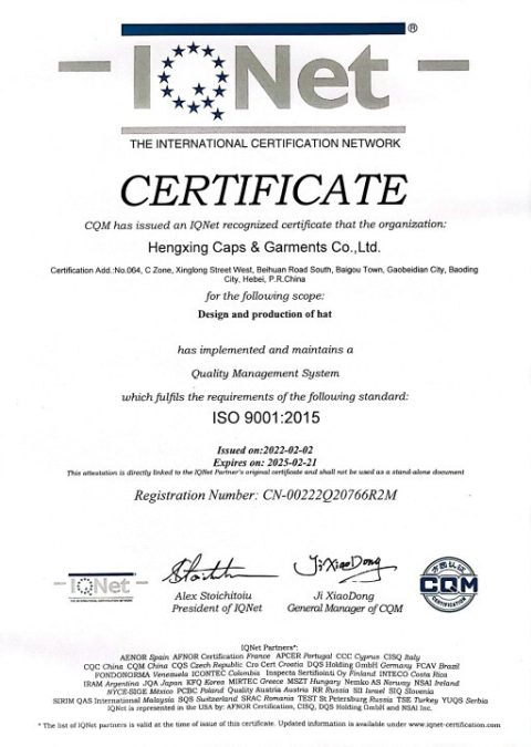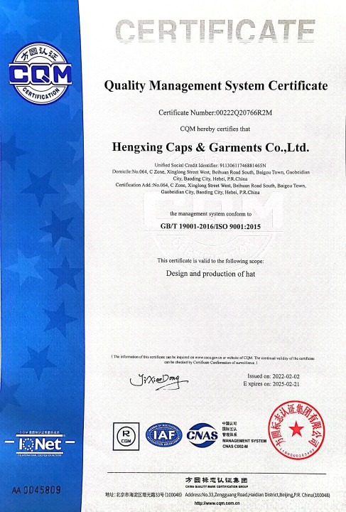 HX Factory registered as HEBEI HENGXING CPAS&GARMENTS CO., LTD since 1992,has 30 years of experience in the production of high-quality headwear, and more than 5 years of experience in casual clothing. We’ve always insisted on improving product supply capabilities around our customer’s needs, which is why we have so many long-term customers. From hats to garments, we’ve been striving to provide new products that customers ask for. HENGXING has 2 hat production bases for OEM orders, and 1 special production base for small quantity orders. 5 sales teams and 1 design team offer professional service. Samples can be shipped in 7 days, and small orders finished in 3 to 5 weeks. There are 5 inspection processes during production to ensure stable quality, including fabrics, decoration, accessories, sewing, and order details. Our success has always been connected to the creators that express their vision through our products. Thank you for supporting those efforts and we’re continuing to improve the products and services we provide.