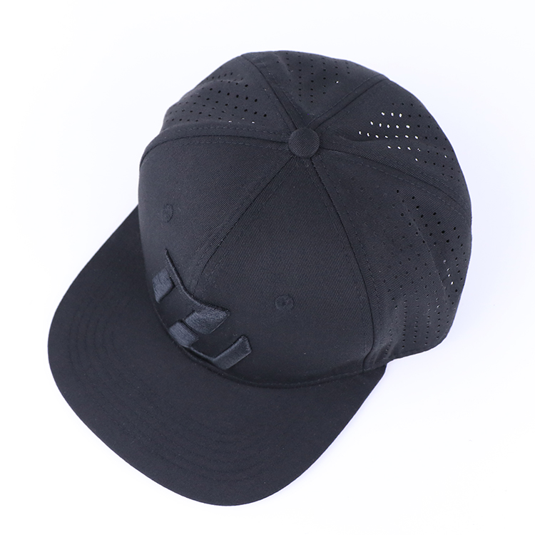 6 Panel 3D Embroidery Laser Cut Hole Perforated Snapback Cap