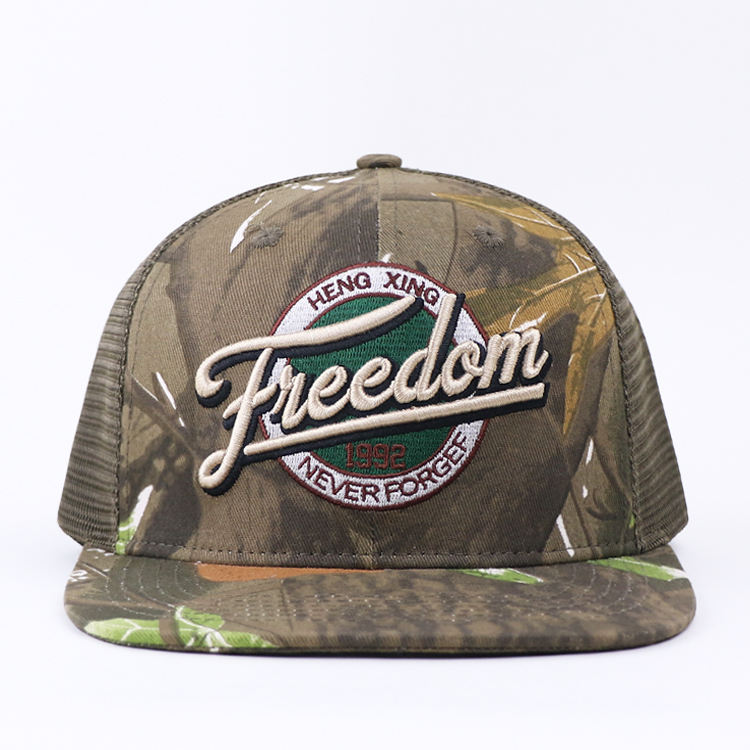 6 Panel Camouflage 3D Embroidered Logo Trucker Hat