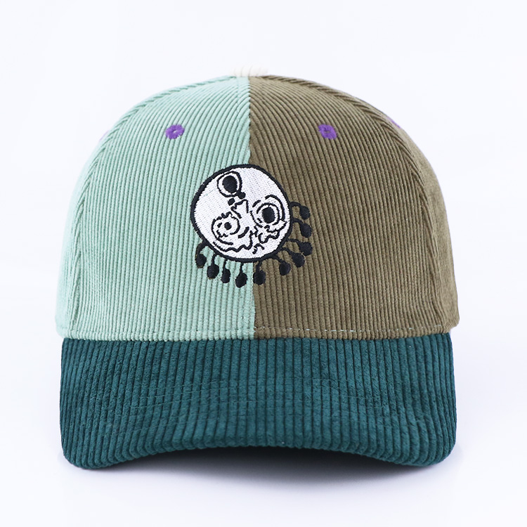 6 Panel Colour Block Corduroy Embroidered Baseball Cap