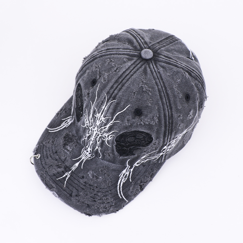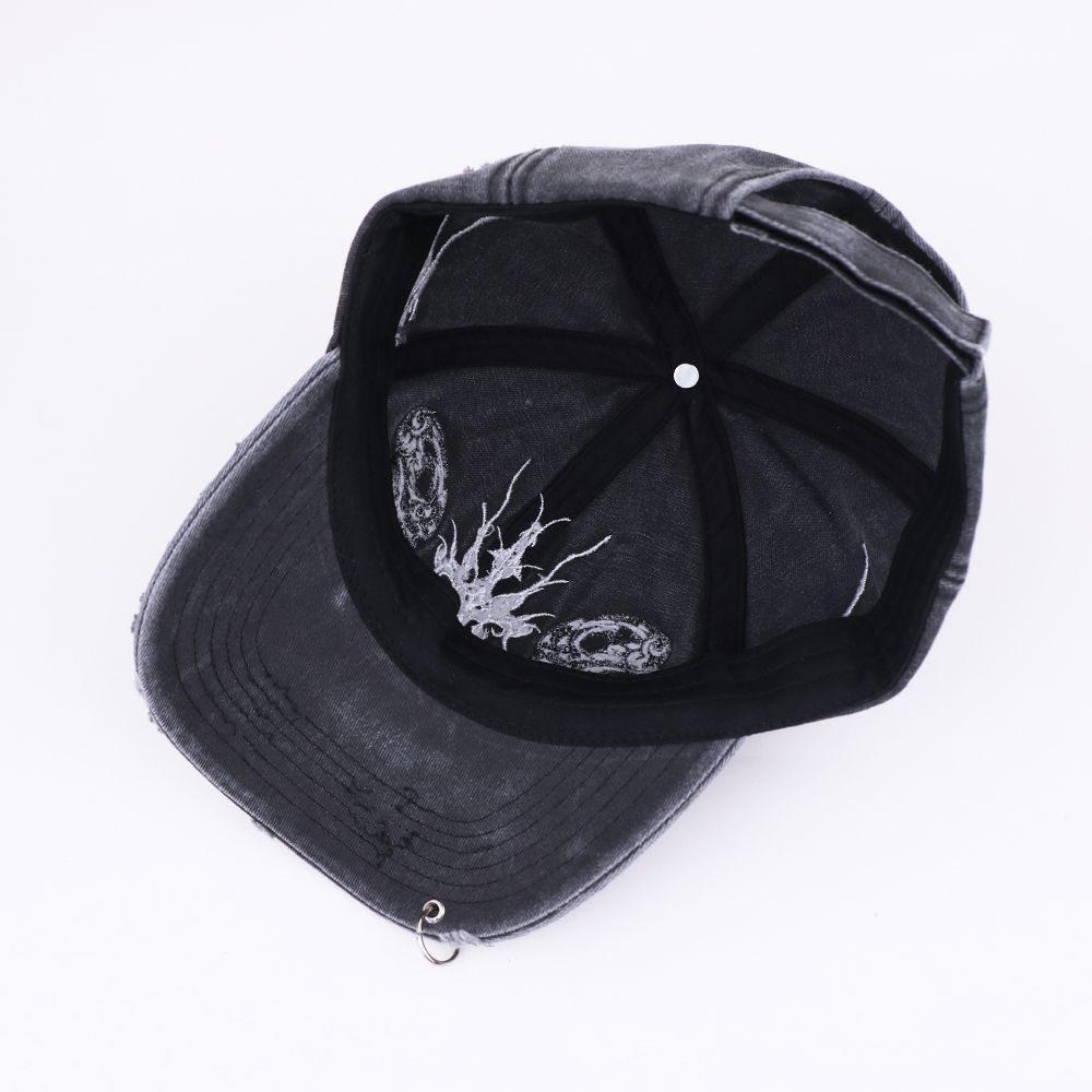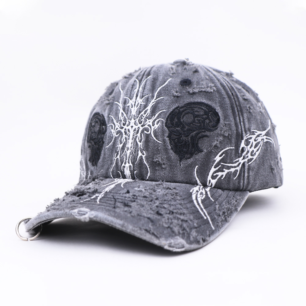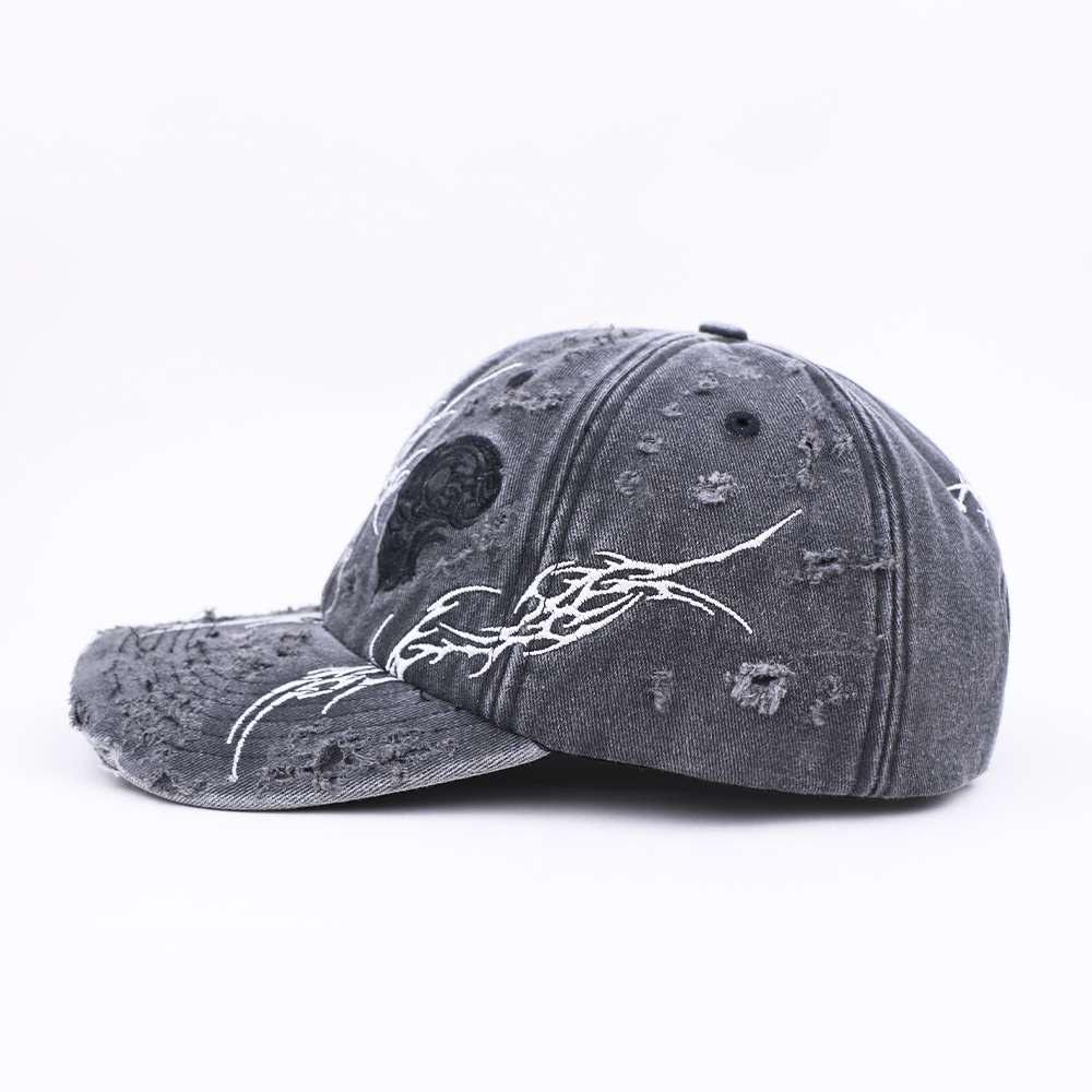 6 Panel Distressed Cotton Washed Denim Dad Hats With Custom Logo
