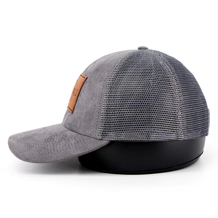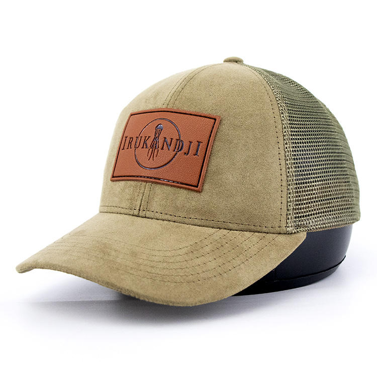 6 Panel Trucker Hat Velvet Custom Leather Patch Logo