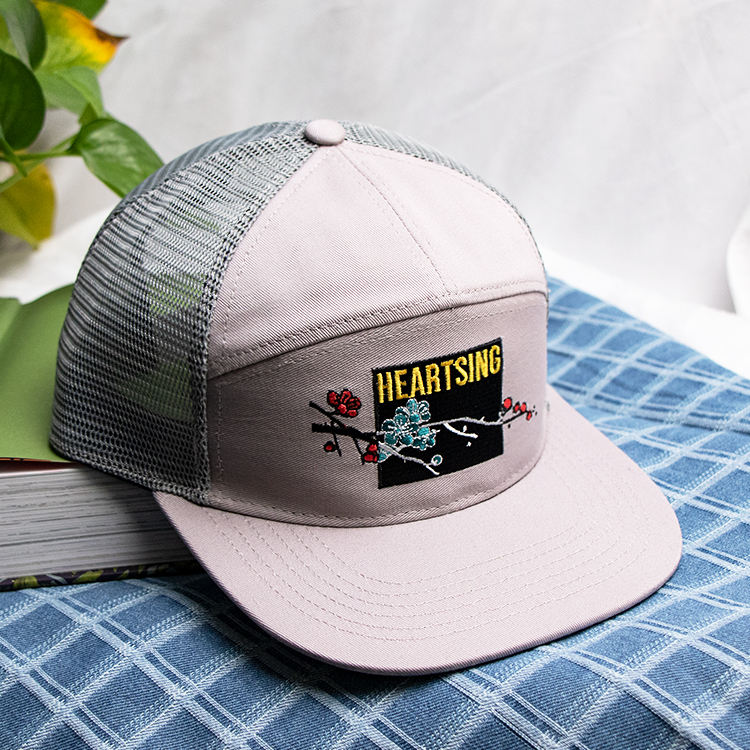 7 Panel Trucker Hat Embroidery Logo Snapback Cap