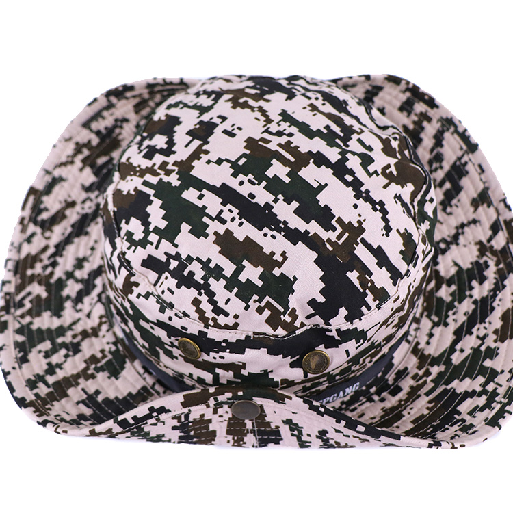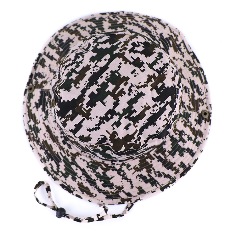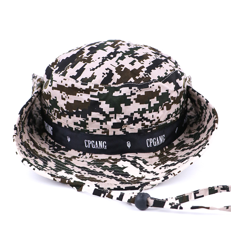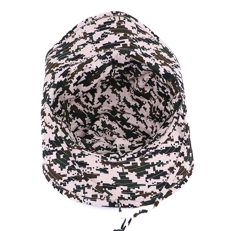 All Over Printed Double-Side Camouflage Polyester Bucket Hat With Rope Wide Brim Camo