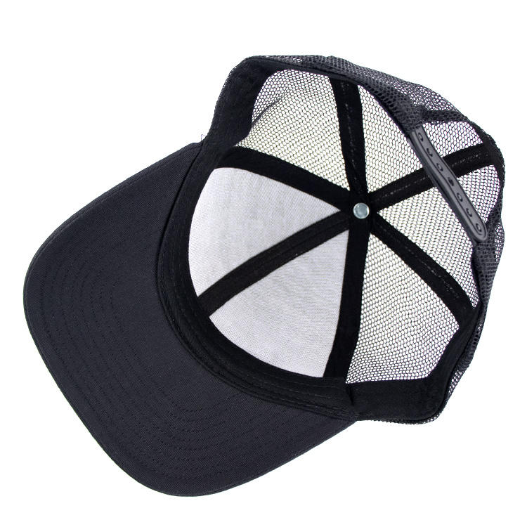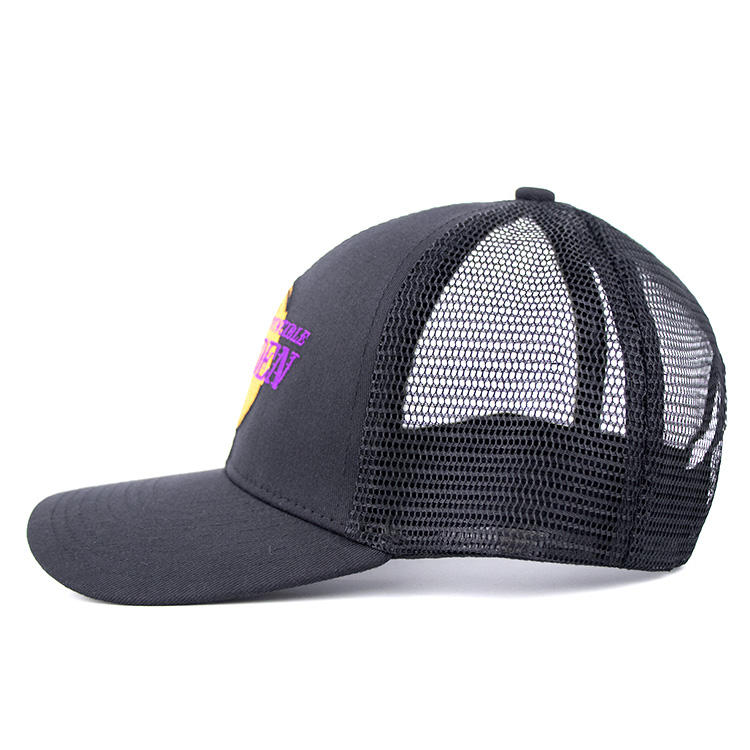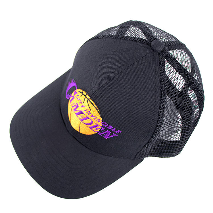 Black Polyester Custom Embroidered Logo Trucker Hat