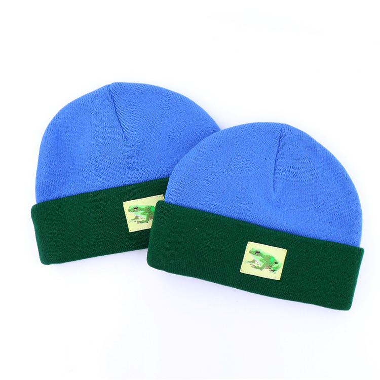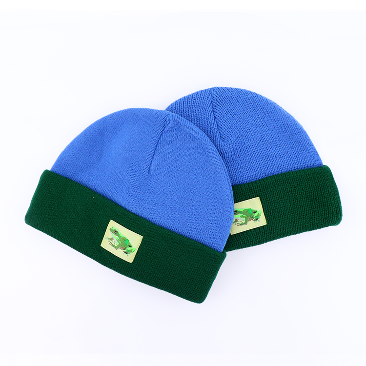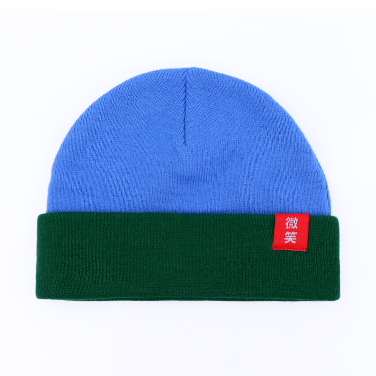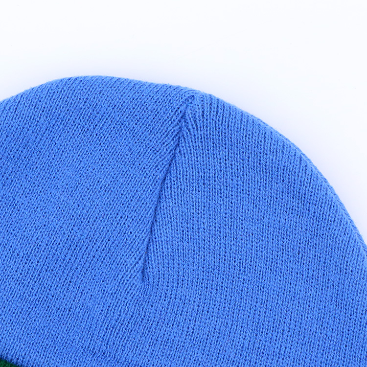 Designer Blue Cuff Acrylic Ribbed Custom Beanie With Logo