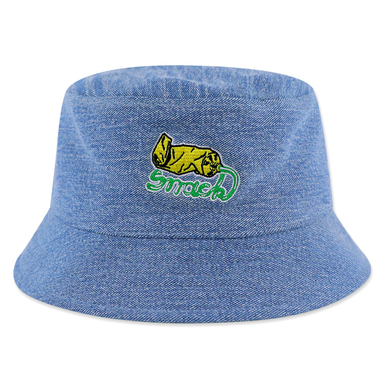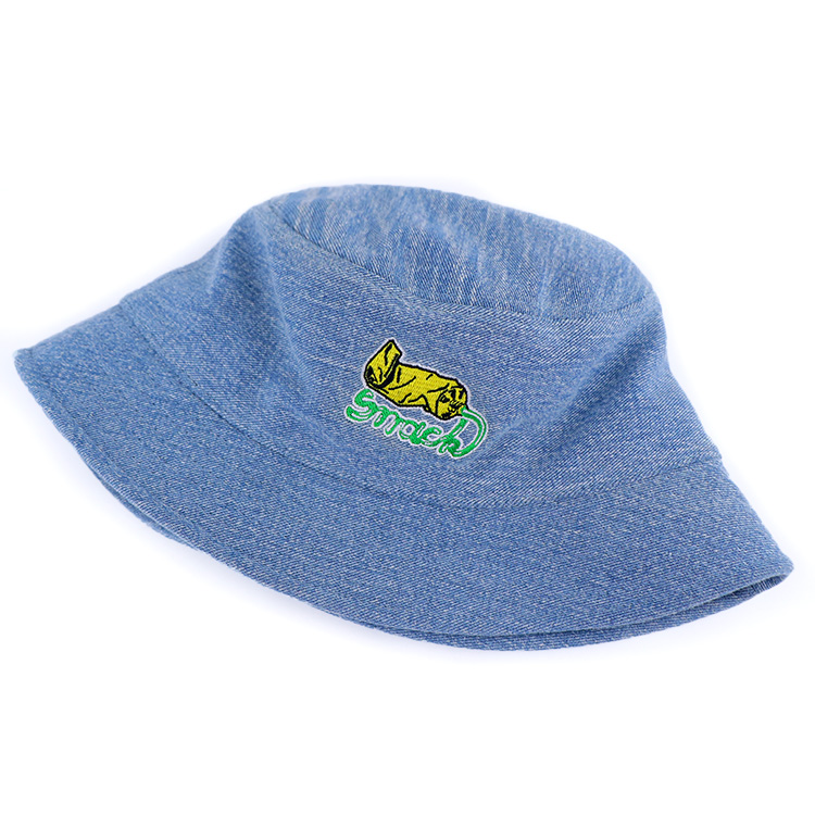 Embroidery Distressed Denim Bucket Cap Sun Hats No Rope Bucket Hat