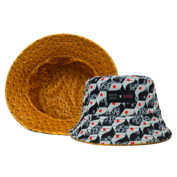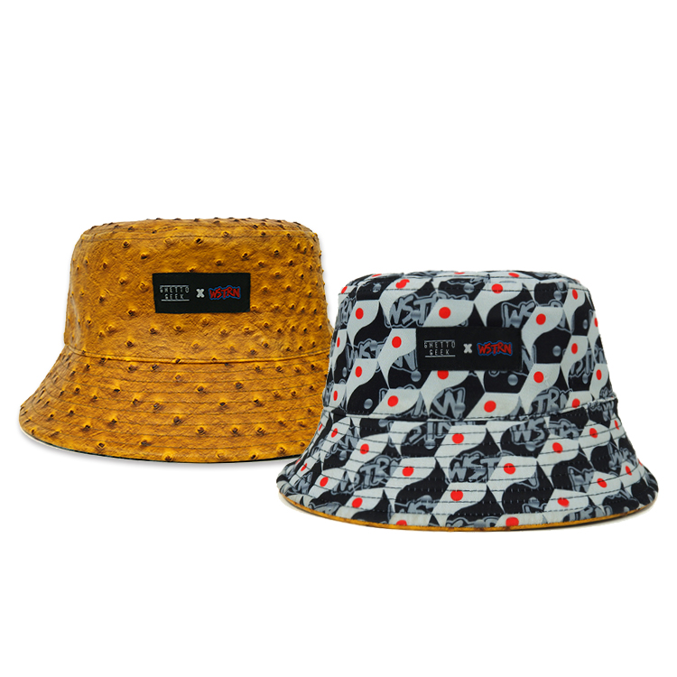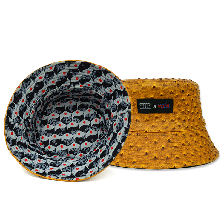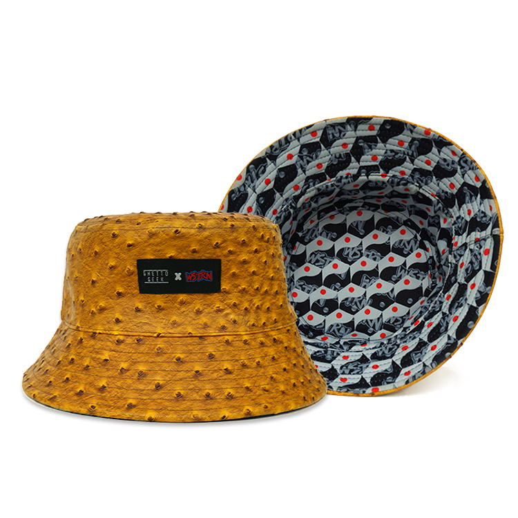 Ostrich Grain Leather Custom Logo Double-Side Bucket Hat
