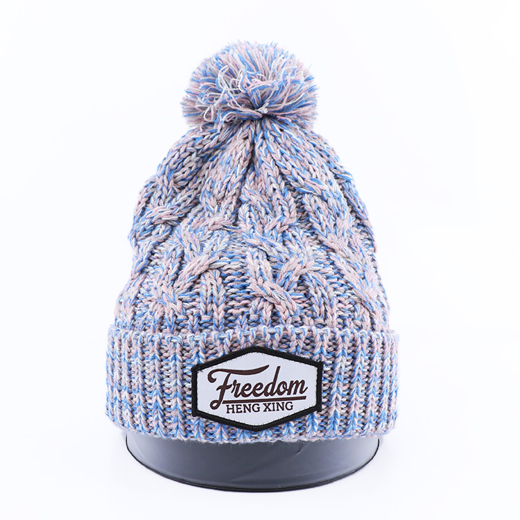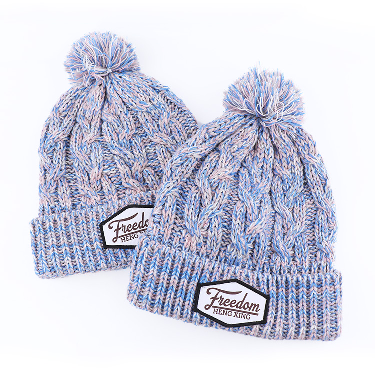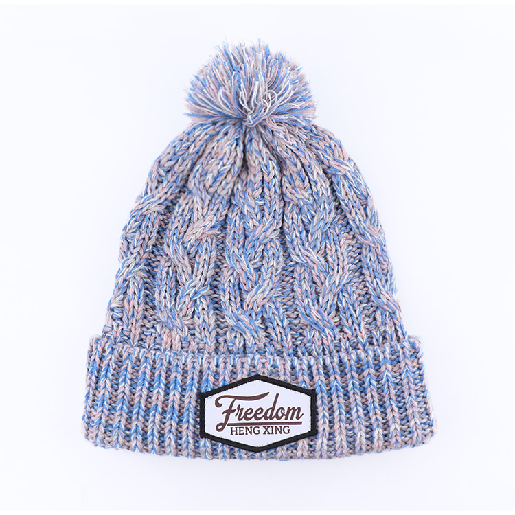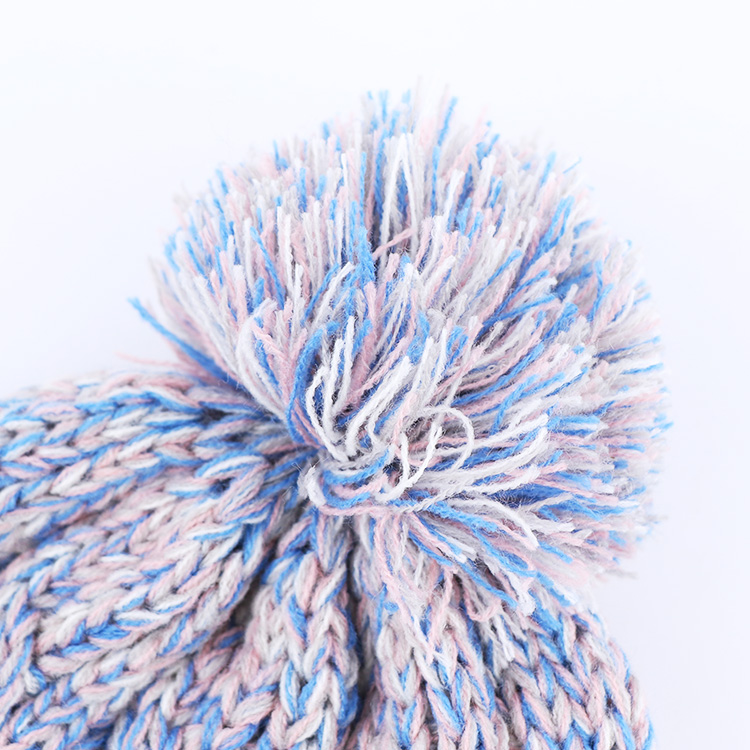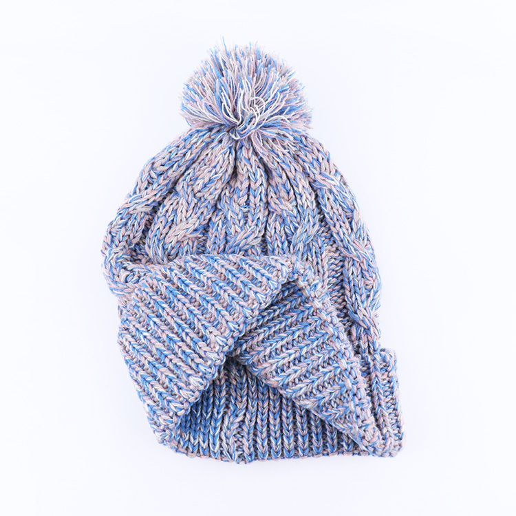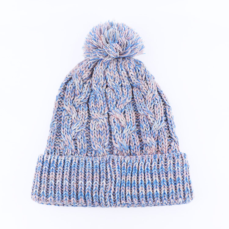 Plain Acrylic Knitted Cuffed Unisex Winter Pom Beanie Hat
