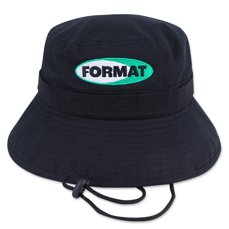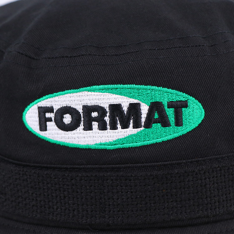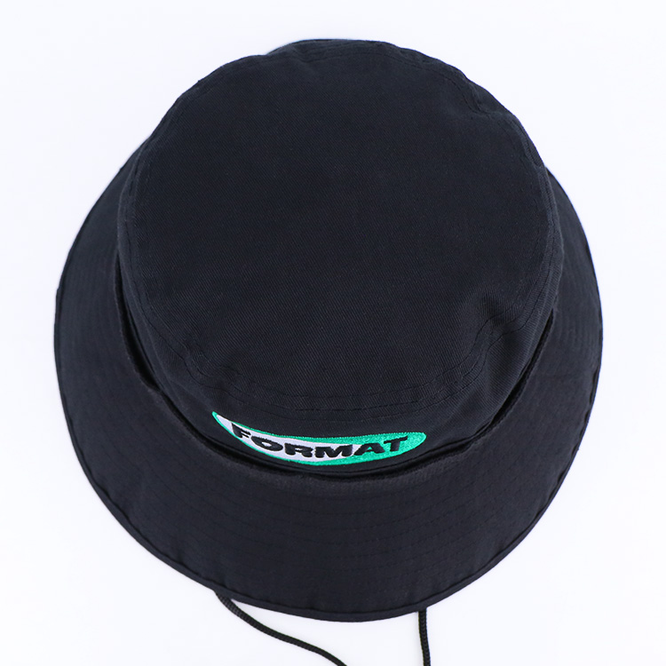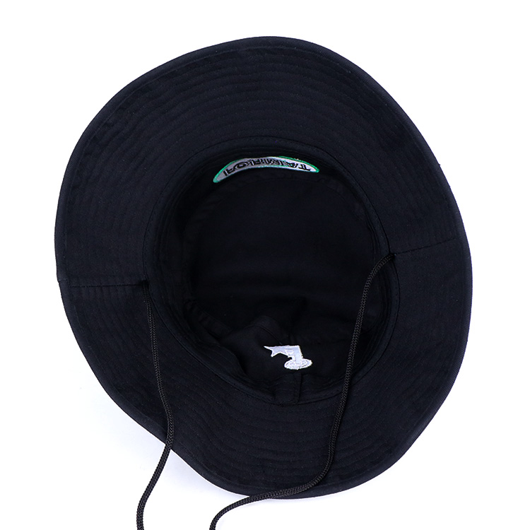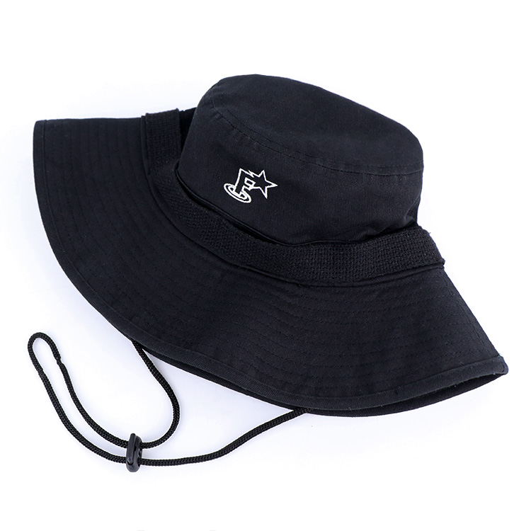 Polyester Custom 3D Embroidered Logo Bucket Hat With Rope