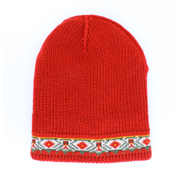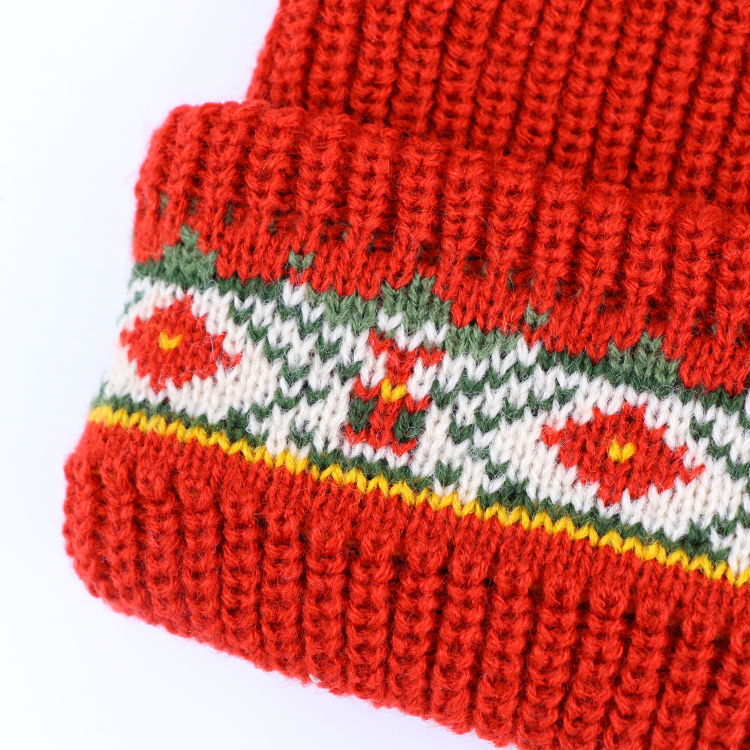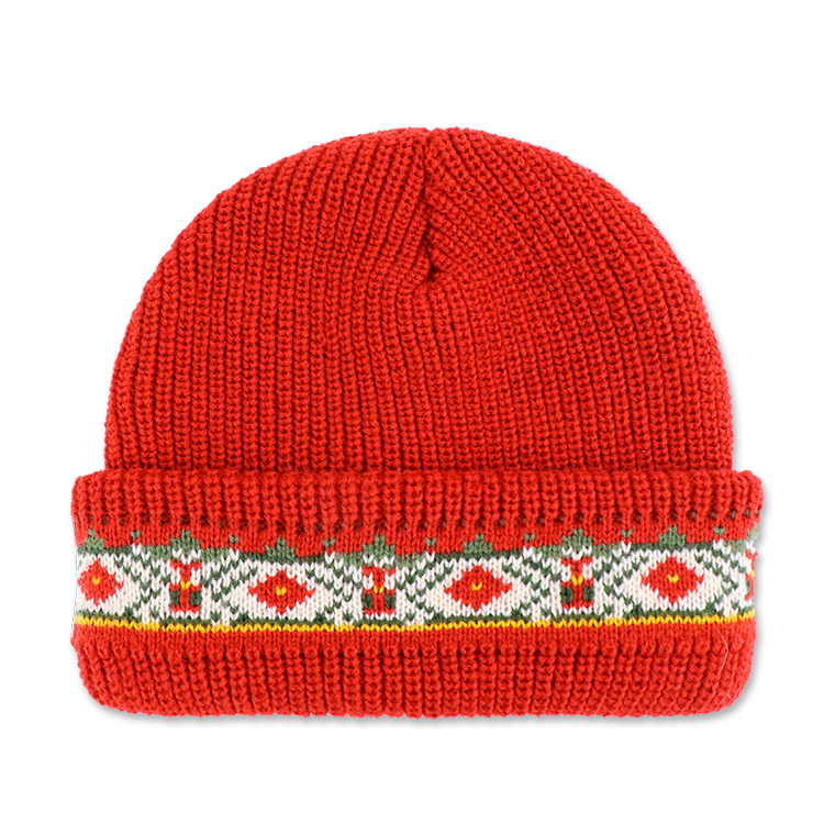 Red Beanie Custom Hat Jacquard Knit Christmas Cuffed Beanie